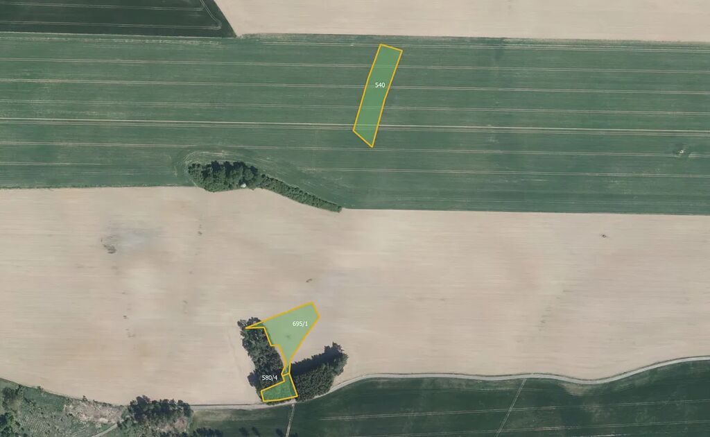 Pozemky jsou zapsány pod čísly 1139/11, 1078/2, 1054, 905/2, 900/19, 900/17, 803, 802/1, 770/1, 695/1, 580/4, 579/3, 579/2, 540, 510, 508/2, 504/4, 504/3, 469/1, 468/2, 422/1, 402/2, 401/1 a 336/5.