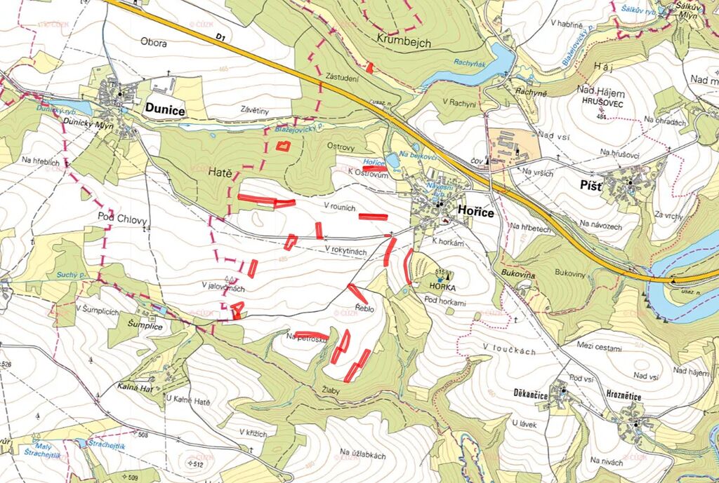 Nabízíme k prodeji zemědělské pozemky nacházející se v katastrálním území Hořice u Humpolce, okres Pelhřimov. Pozemky jsou zapsány na listu vlastnictví 338 a jsou ve 100% vlastnictví.