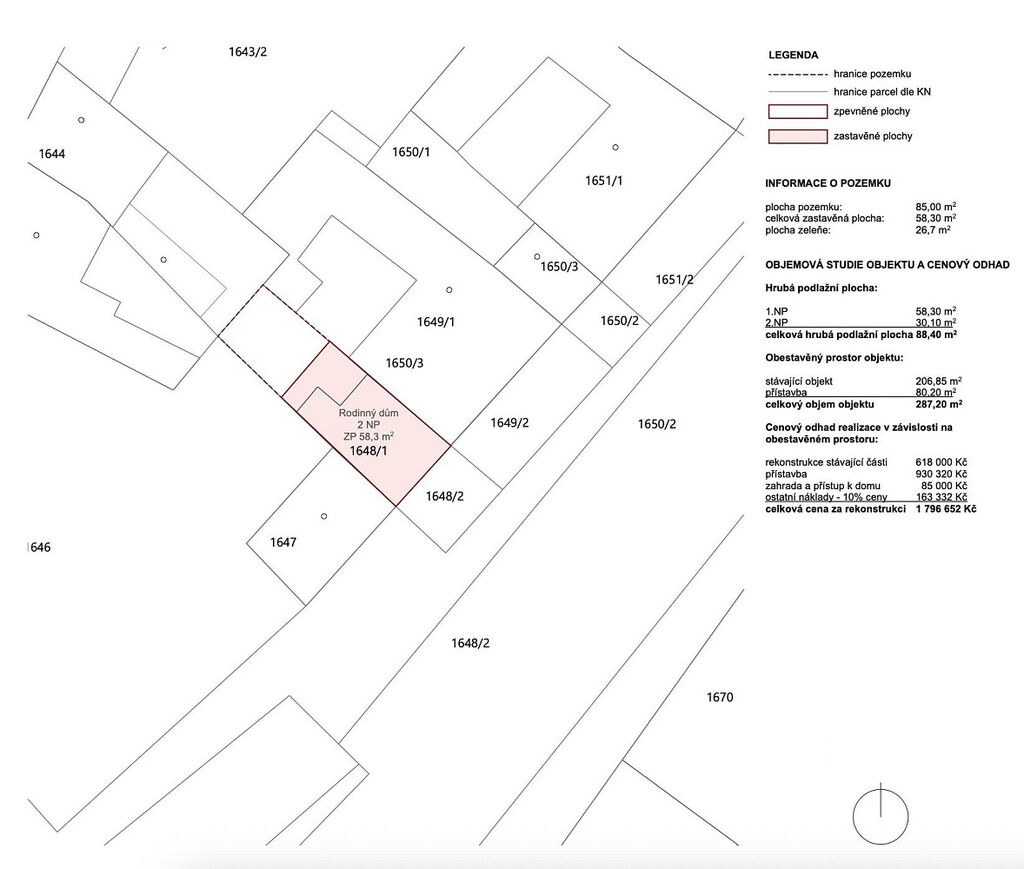 Odhadované náklady na rekonstrukci činí přibližně 1 800 000 Kč.