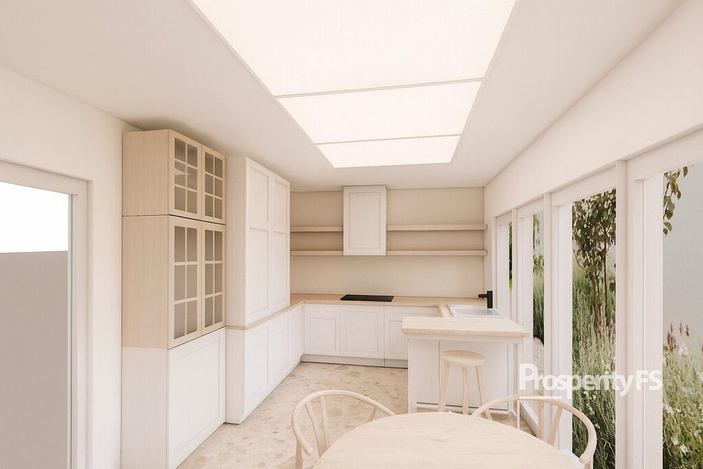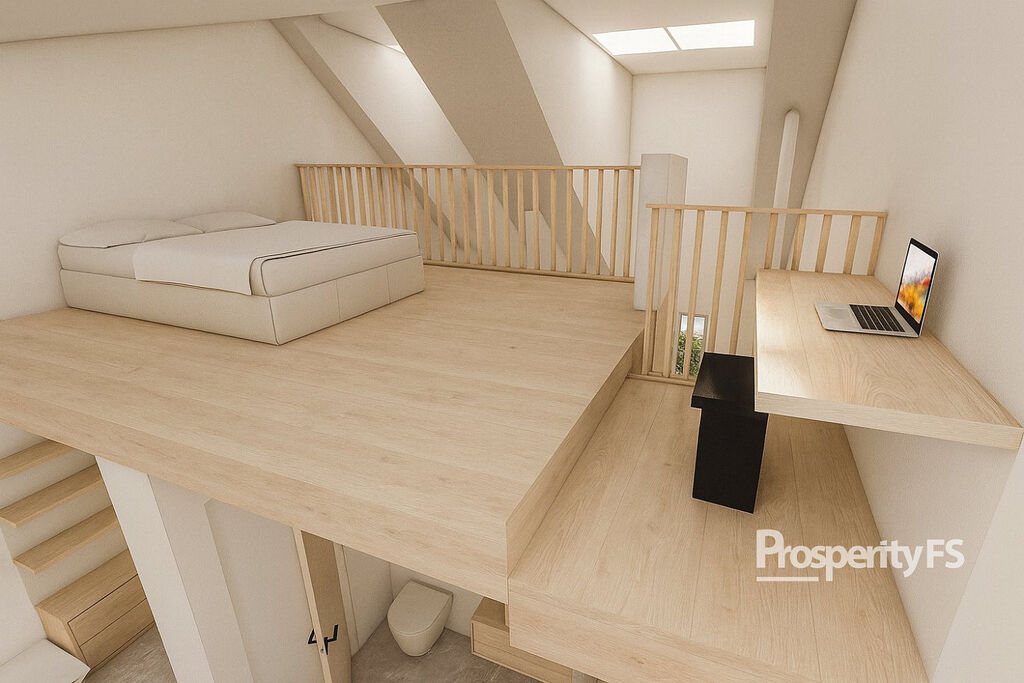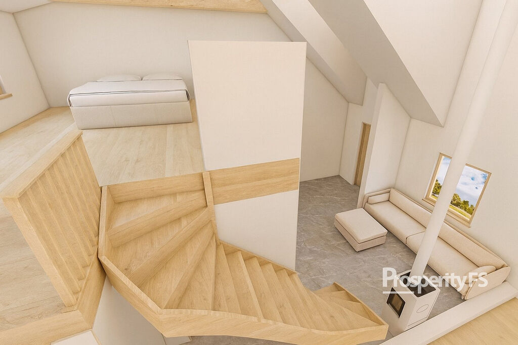 Součástí prodeje je architektonická studie, která rozšiřuje původní užitnou plochu z 28,71 m² na 88,40 m² a proměňuje objekt v moderní open-space rodinný dům se zahrádkou.
