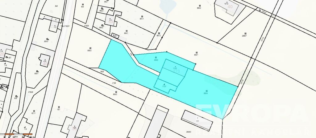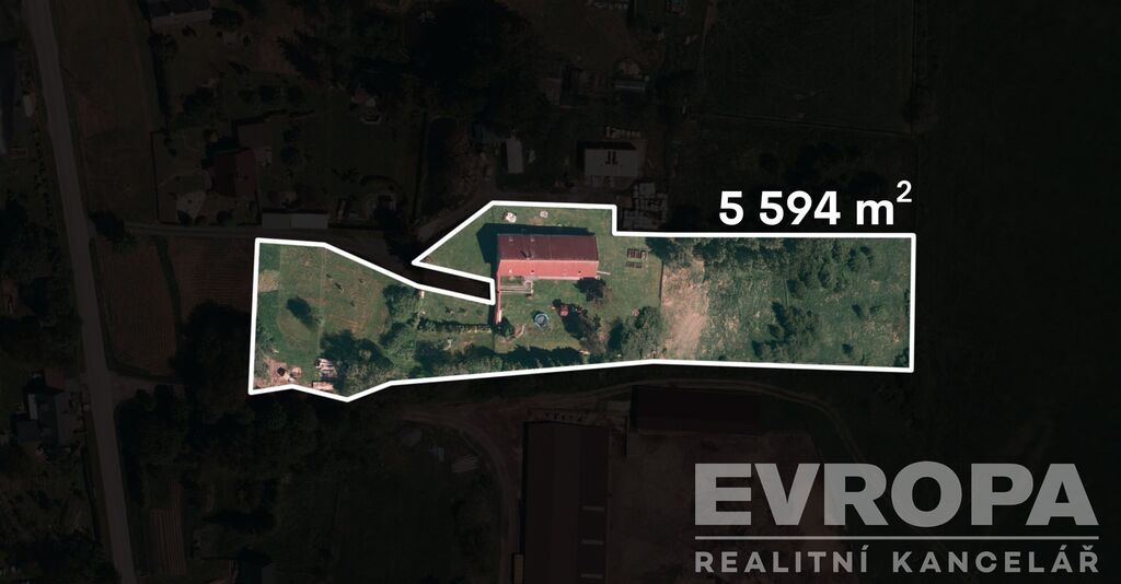 Dům se nachází na klidném a slunném pozemku a je obklopen opravdu rozlehlou zahradou o ploše 5.326 m², ideální pro rodinné aktivity, relaxaci či pěstování plodin.