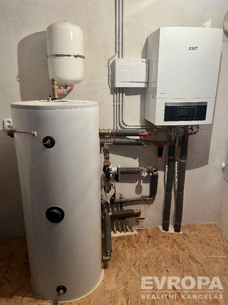 Ohledně vybavení, dům disponuje moderními elektrospotřebiči včetně elektrické varné desky, mikrovlnné trouby, samostatné lednice, vestavěné elektrické trouby, odsavače par a myčky nádobí. Topení je zajištěno prostřednictvím tepelného čerpadla typu vzduchvoda s úctyhodným výkonem 17 kWh a je doplněno o dva bojlery pro ohřev teplé užitkové vody. Voda je zajištěna jak z veřejného vodovodu, tak z vlastní studny s užitkovou vodou, což představuje výhodné řešení pro zavlažování zahrady a ekologické řešení spotřeby vody obecně.