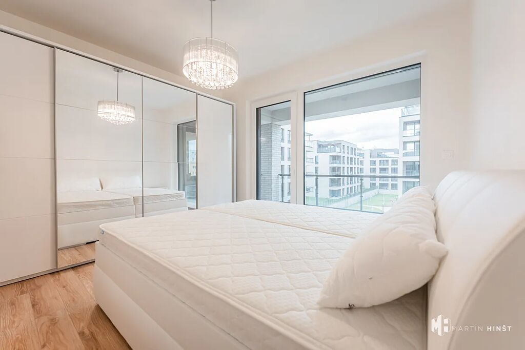 Nabízíme k pronájmu luxusní byt v novostavbě domu v projektu Green Port na Praze 10 - Strašnicích. Byt se nachází ve 4/6 patře s výtahem a je kompletně zařízen nábytkem i spotřebiči. Všechny pokoje jsou neprůchozí a vstupujete do nich z centrální chodby. Z obývacího pokoje a ložnice je vstup na lodžii. Celý být je situován do klidného vnitrobloku. K dispozici jsou dvě toalety, kde jedna je v koupelně a druhá samostatně. Byt splňuje veškerá kritéria moderního bydlení a jsou zde použity pouze kvalitní materiály. Součástí nájmu je parkovací stání a prostorná zděná sklepní kóje umístěné v suterénu domu.