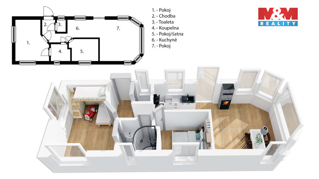 Představujeme Vám moderní mobilní dům 3+kk po celkové rekonstrukci, která zahrnovala nové rozvody, podlahy, koupelnu, kuchyňskou linku vč. spotřebičů a moderní vybavení.
