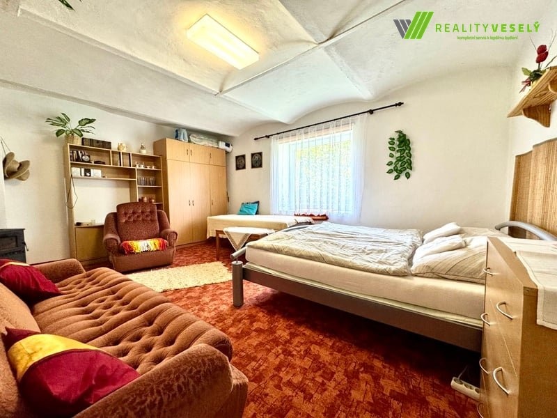Součástí prodeje je také 1/3 podíl na přilehlé hospodářské budově, která nabízí ideální prostor pro uskladnění dřeva na vytápění, nebo zahradní techniky. Dále získáte 1/3 podíl o výměře přes 1900 m² na přilehlých pozemcích včetně uzavřeného dvora. Díky tomu získáte velkorysý kousek přírody k vašemu užívání. K chalupě vede zpevněná polní cesta z hlavní komunikace, což zajišťuje snadný přístup. Nejbližší autobusová zastávka se nachází 500 m od domu, obchod v sousední obci Slatina. Kompletní občanskou vybavenost nabízí město Jevišovice.