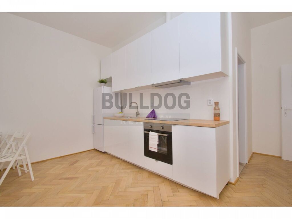 Exkluzivně nabízíme k pronájmu byt 3+kk, 70 m2, který prochází výměnou podlahové krytiny a instalací nové klimatizace - na fotografiích jsou parkety, ale momentálně se v celém bytě pokládá kvalitní vinylová podlaha v dekoru dřeva. Byt nachází ve 3. patře cihlové budovy s výtahem, 150 metrů od stanice metra Palmovka. Byt je zařízený novou kuchyňskou linkou s vestavěnými spotřebiči (sklokeramická deska, vestavěná trouba, myčka a odsavač par), samostatně stojící kombinovanou lednicí a pračkou. V bytě byla provedena v roce 2017 kompletní rekonstrukce rozvodů (elektrika, voda a odpady), nové sádrové stěrky, repase původních parket, nové interiérové dveře, plastová okna a po celém bytě je rozvedena domácí internetová síť a rozvod televize. Byt je vytápěn elektrickými úspornými akumulačními přímotopy Mirava a ohřev vody je řešen bojlerem, do bytu je zaveden třífázový rozvod s dvoj tarifní sníženou sazbou (tzv. noční proud). V domě je k dispozici připojení přes vysokorychlostní kabelovou síť UPC nebo je možné zprostředkovat sdílený internet za 250,- Kč/měs.. V místě a blízkém okolí je veškerá občanská vybavenost - restaurace, obchody, lékárny, supermarkety (Billa, Kaufland, Albert), divadla, golfové hřiště, fitness, školy, školky, OC Harfa, praktičtí lékaři a pošta. Výborná dostupnost do centra - dopravní uzel metro B, autobusy č. 140, 302, 109, H1, 185 a 239, tramvaje č. 1, 3, 6, 8, 10, 12, 13, 14, 15, 16, 23, 24, 25 a 26 a několik nočních spojů, např. na Nám. Republiky jste za 7 min. a na Václavském nám. za 8 minut. Nájem je uveden bez poplatků 675,- Kč/osoba + vlastní spotřeba energií a internetu. Výborná nabídka - vhodné pro rodinu či spolubydlení, nebo pro firmu na kanceláře. Doporučujeme! Pro více informací kontaktujte makléřku.