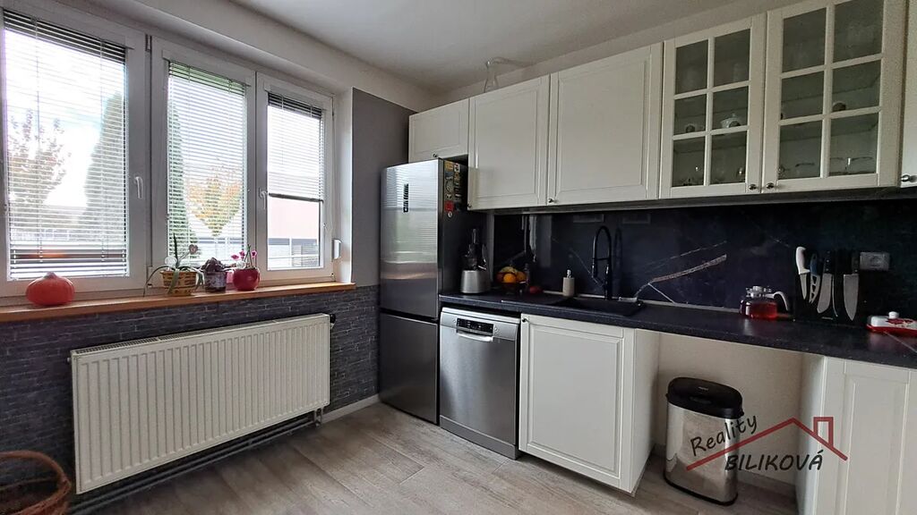 Nabízím k prodeji byt 4+1 v obci Jenštejn s parkovacím stáním. Byt o výměře 93,7m2 se nachází ve zvýšeném přízemí cihlového domu. Dispozice bytu: předsíň (8,6m2), kuchyň (9,3m2), koupelna (3,3m2), WC, obývací pokoj ( 17,7m2), ložnice (12,9m2) a dva pokojíky (8,3 a 7,9m2). K bytu náleží 3 sklepy (17,5, 2,9 a 2,9m2) . V bytě vlastní plynový kotel pro vytápění i ohřev vody. V kuchyni, obývacím pokoji a ložnici jsou předokenní žaluzie. V kuchyni kuchyňská linka s vestavěnými spotřebiči (plynová varná deska, digestoř, horkovzdušná trouba, mikrovlná trouba). Na chodbě vestavěné skříně. Na podlahách dlažba, PVC a plovoucí podlaha. . K bytu náleží podíl na pozemku okolo domu, kde se nachází parkovací stání. Dům se nachází v zástavbě rodinných a menších bytových domů. V domě 6 bytových jednotek.