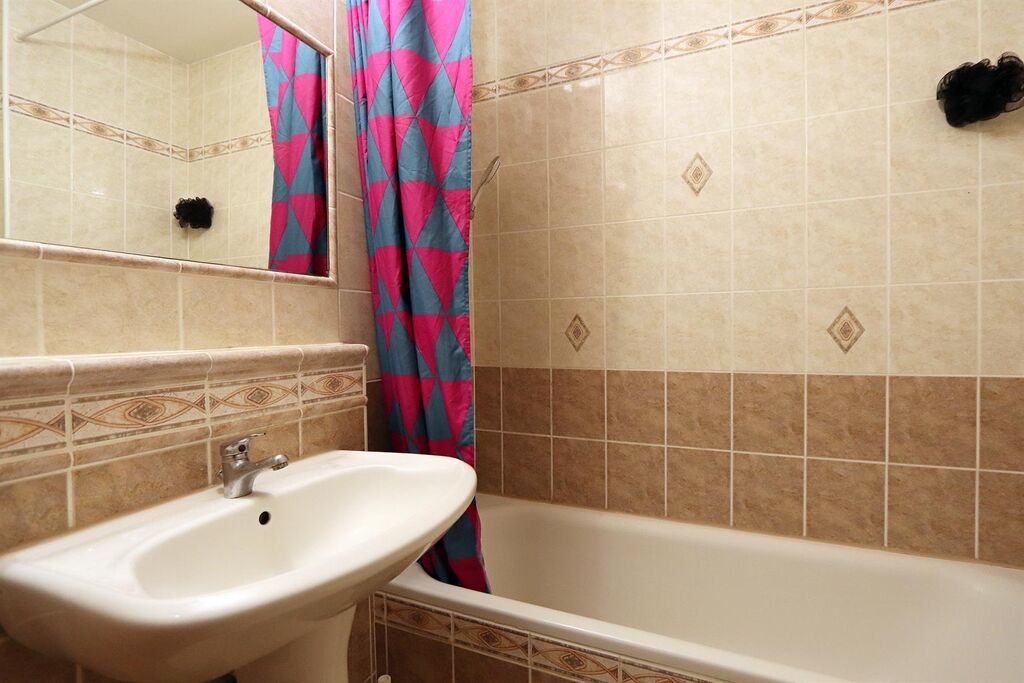 V koupelně je vana, umyvadlo a toaleta.