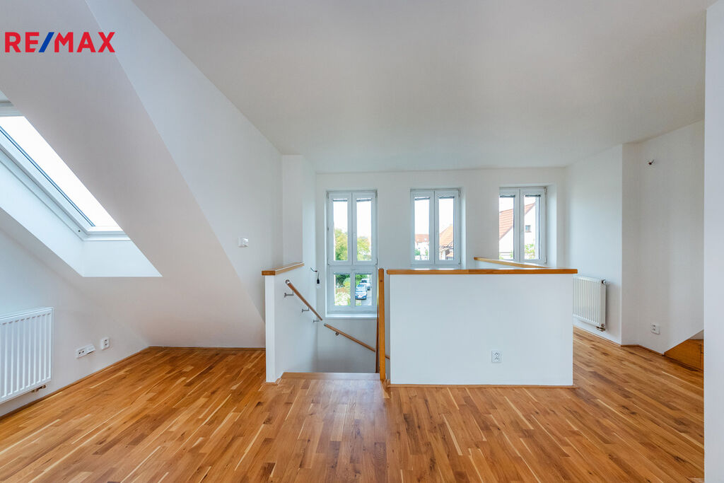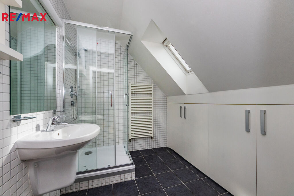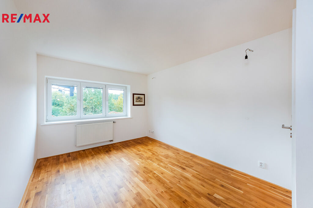 Hledáte pronájem a přáli byste si bydlet v rodinném domě v zajímavé lokalitě Prahy na Starém Spořilově? Nabízíme velmi pěkný řadový rodinný dům, který se nachází na konci slepé ulice. Interiér je po rekonstrukci, čistě vymalováno. Dům je částečně podsklepen. V 1.PP je místnost se zahradní sprchou. V 1.NP prostorný obývací pokoj, kuchyňský kout, šatna a toaleta. Ve 2.NP jsou pak dvě (2) samostatné neprůchozí ložnice (jedna s malou šatnou), koupelna s vanou, sprchovým koutem a toaletou. 3.NP je upraveno jako ateliér s prostorem na spaní, který je částečně oddělen od ostatní plochy a koupelna se sprchovým koutem a toaletou. Koupelny mají podlahové vytápění. Kuchyňský kout je vybaven myčkou, lednicí a mrazákem, digestoří, el. troubou a sklokeramickou deskou. Plastová okna se žaluziemi, parkety a dlažba, vytápění plynový kotel. Menší čtvercová zahrada, poskytuje místo pro grilování či jinou relaxaci a není náročná na údržbu. Alarm, rozvod TV ve všech místnostech, satelit. Dům se pronajímá jako nezařízený. Částečně kryté parkovací stání před domem, další parkování bez problémů v ulici. Výborná dopravní dostupnost do centra, D1 (metro Roztyly 5 minut pěšky, MHD autobus, tramvaj) a veškerá občanská vybavenost v místě (MŠ, ZŠ, Poliklinika, Supermarket, dětská hřiště, pošta atd.) V blízkosti cyklotrasy v Michelském lese. Lokalita Starého Spořilova nabízí bydlení jako na vesnici, ale přesto v Praze. Přijďte se podívat.