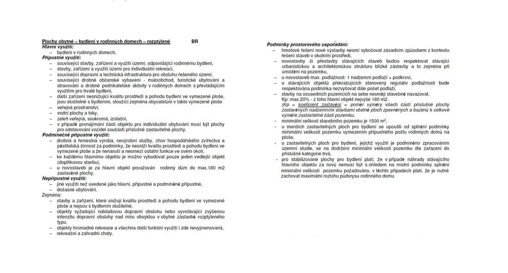 Dle územního plánu je zařazen do do ploch obytných - bydlení v rodinných domech - rozptýlených, určených ke stavbě pro bydlení i rekreaci či kombinaci s podnikáním - podlažnost 1 NP + obytné podkroví, zastavitelnost max. 20%.