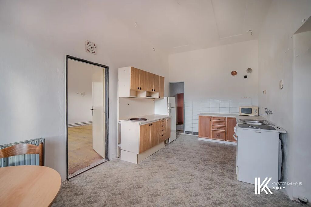 Nemovitost tvoří jeden harmonický celek rozdělený do tří částí – obytnou část (cca 120 m2), prostornou garáž s dílnou (cca 33 m2) a hospodářské zázemí (cca 65 m2), které kdysi sloužilo pro chov zvířat. Každá z těchto částí má samostatný vstup, což otevírá široké možnosti budoucího využití – od rodinného sídla po ubytování či ateliérový prostor.