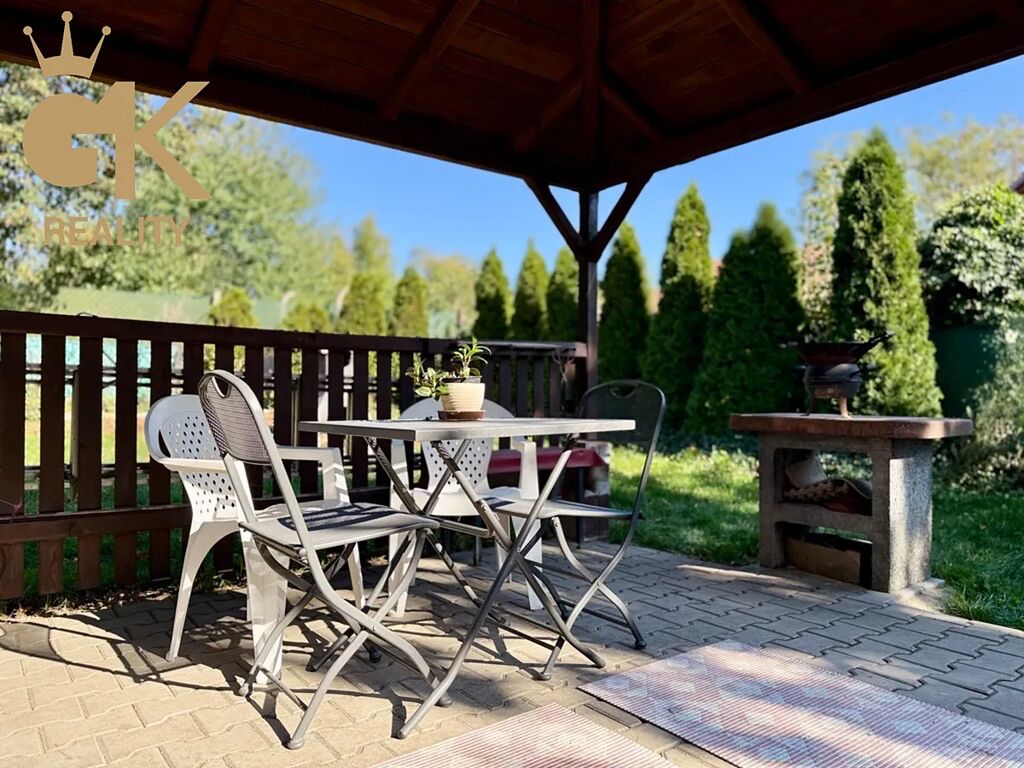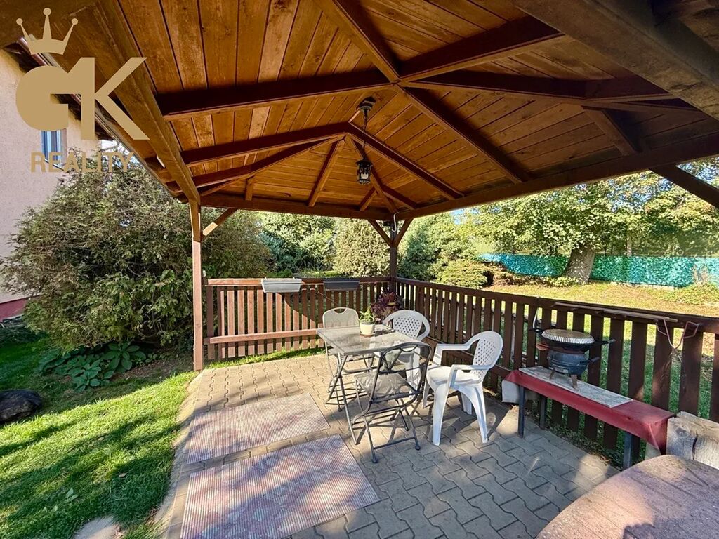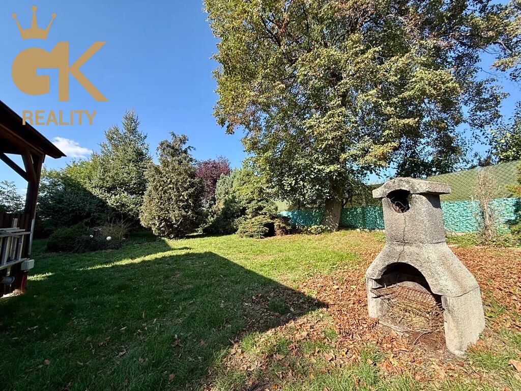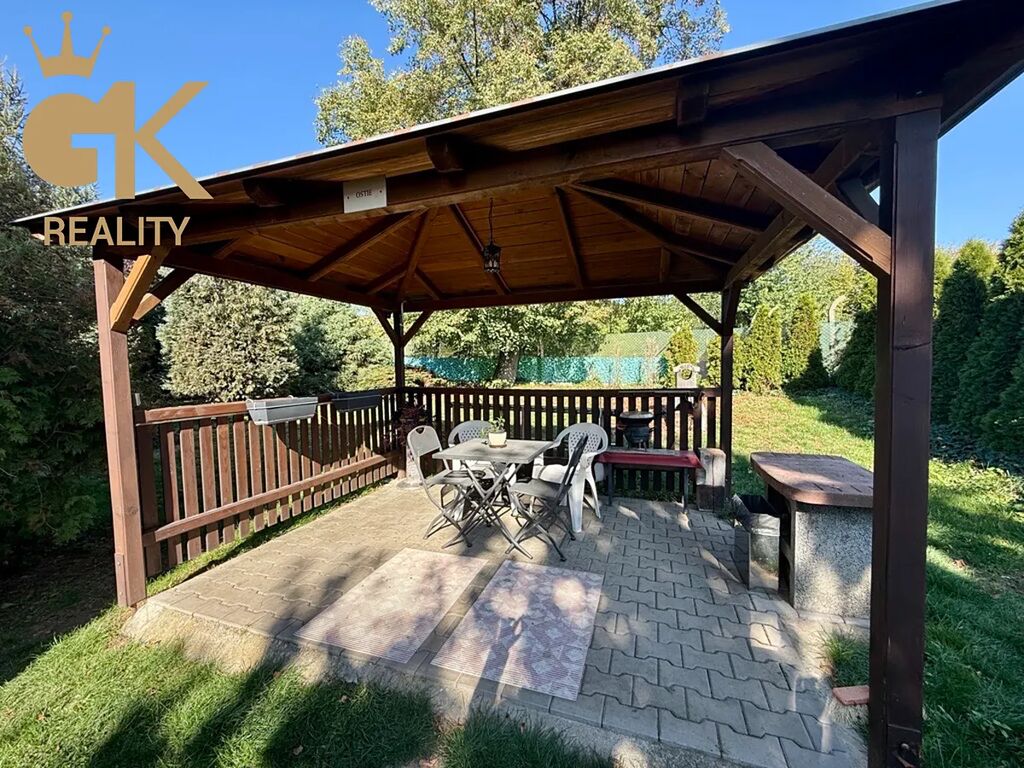 Na dům navazuje pečlivě udržovaná okrasná zahrada, která poskytuje naprosté soukromí a příjemné prostředí pro odpočinek. V zadní části se nachází altán s krbem a posezením, ideální místo pro letní grilování, rodinné oslavy či klidné chvíle s přáteli. Zahrada je osázena okrasnými dřevinami a nabízí i možnost pěstování zeleniny nebo drobných ovocných stromů.