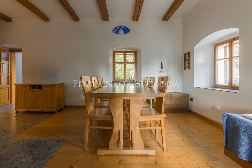 Dispozičně se nemovitost skládá ze dvou částí: obytné a hospodářské. Obytnou část domu v 1.NP tvoří velkoryse pojata kuchyň s jídelnou (31 m²), 2x pokoj (22 m² a 11 m²), koupelna (8 m²), samostatná WC (1,45 m²), spíž (3 m²), terasa (11 m²) a v mezipatře obývací pokoj s krbem (17 m²). Obytnou část domu ve 2.NP tvoří velká ložnice (53 m²) a galerie, která slouží jako ložnice (38 m²). Hospodářská část se pak skládá ze stodoly (38,5 m²) a sklepu (8 m²).