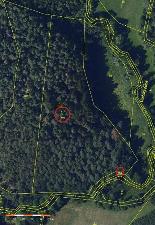 Jedná se o prodej lesních pozemků tvořící jednolitý blok s porostem mýtní kmenoviny na ploše 0,72 ha s převažující dřevinou borovice, dále s 12-letou smrkovou mlazinou na ploše 0,01 ha a na ploše 0,56 se nachází holina po těžbě. Pozemky se nachází na mírně svažitém terénu směrem k Úsobskému potoku.