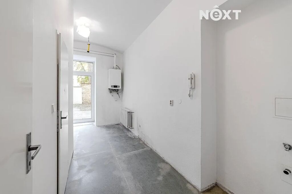 Byt se nachází ve 2. podzemním podlaží (okna s výhledem do vnitrobloku) dobře udržovaného historického domu. Bytová jednotka nabízí prostor pro obývací pokoj, kuchyň s jídelním koutem, k dispozici je také koupelna a samostatné WC. Z kuchyně se dostaneme na prostornou předzahrádku, která je situována v klidném vnitrobloku. K bytu je možno si dokoupit sklepní kóji 2,4 m2.