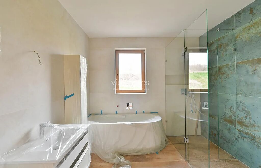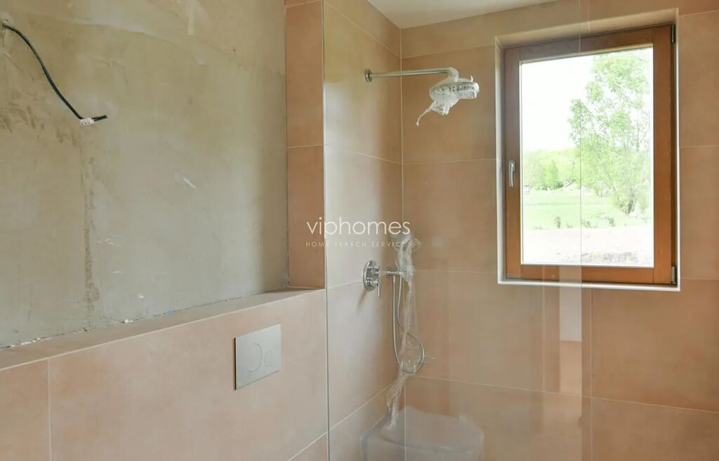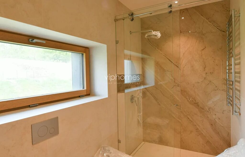 Kvalitní dům v nízkoenergetickém standardu nabízí 6 ložnic a 4 koupelny. V přízemí domu se nachází vstupní hala, prostorný světlý obývací pokoj, orientovaný na jih, (moderní krb), vstup na terasu, místnost, kterou lze využít jako pracovnu / pokoj pro hosty, dále je zde koupelna ze sprchovým koutem, samostatná toaleta. Moderní kuchyňská linka vybavena všemi potřebnými spotřebiči: sporák s keramickou indukční deskou, velká lednice, myčka, el. trouba, mikrovlnka. První patro tvoří čtyři ložnice, (z nichž jedna s přístupem na balkon), koupelna s vanou, bidetem a toaletou, další koupelna ze sprchovým koutem, toaletou a bidetem. Druhé patro nabízí malou galerii a ložnici s krásnými výhledy a ze vstupem na terasu; koupelna se sprchovým koutem a toaletou. V suterénu ještě dvě místnosti, technická místnost s tepelným čerpadlem a přípravou na pračku s sušičku. Dále je zde sauna se sprchou. Garáž pro 2 vozy.