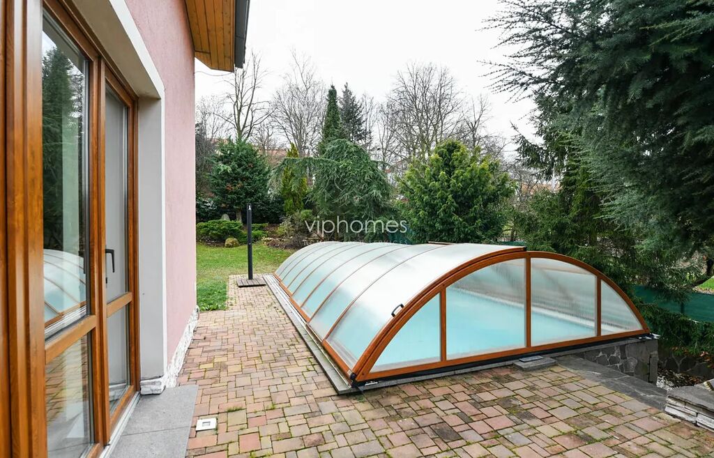 K vybavení patří centrální vysavač, vytápěná podlaha, vestavěné skříně, satelit, internet a zabezpečovací zařízení. Mramorové podlahy, krb v prostoru, vše ve vysokém standardu. Na pozemku kryté parkovací stání pro dvě auta, okrasná zahrada ze vzrostlými stromy, venkovní krytý bazén ze slanou vodou.