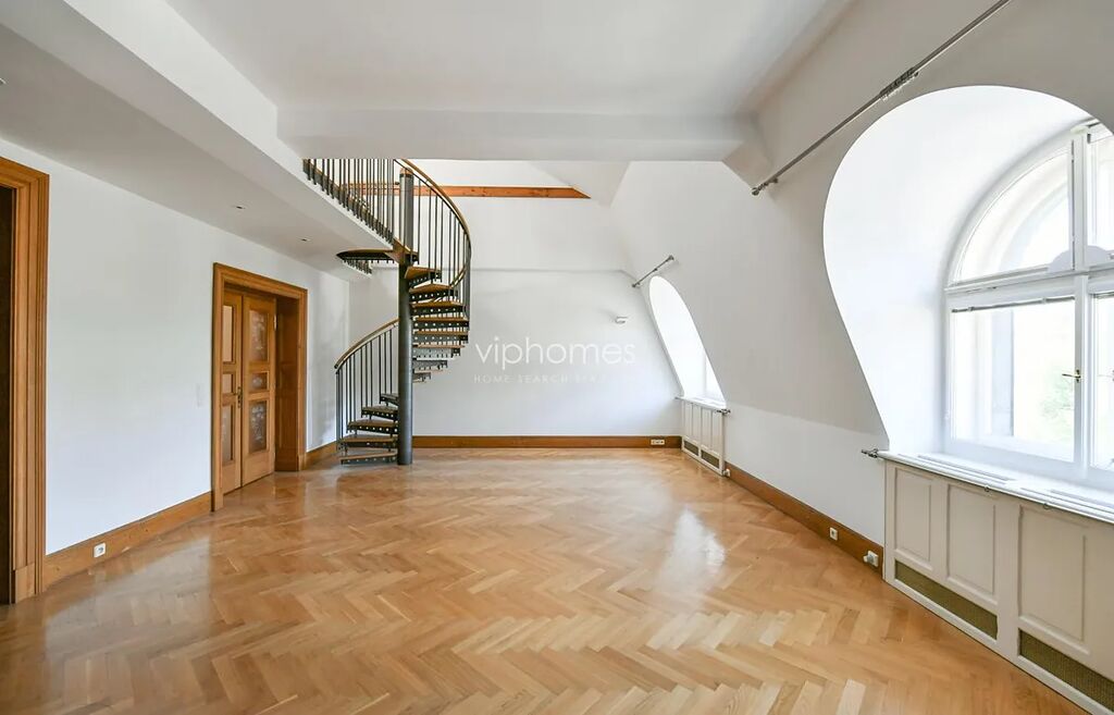 Vysoké stropy, repasované dubové parkety. 24hodinová recepce, možnost parkování v nedalekých garážích Rudolfina.