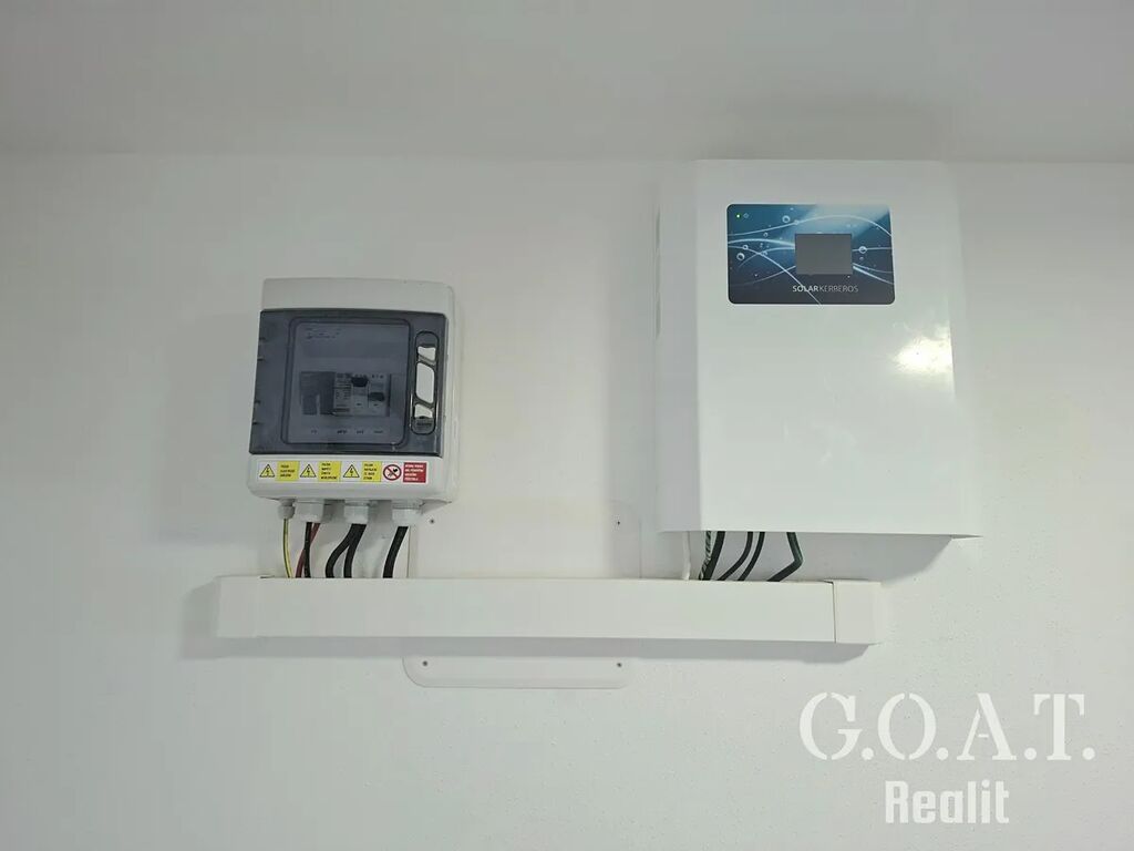 Dům je vytápěn moderním elektrickým podlahovým vytápěním a je vybaven fotovoltaickým systémem pro ohřev teplé vody, což výrazně snižuje provozní náklady. Podlahy tvoří kombinace keramické dlažby a vinylu v dekoru dřeva, což vytváří útulnou atmosféru – jako stvořenou pro zimní večery u krbu.
