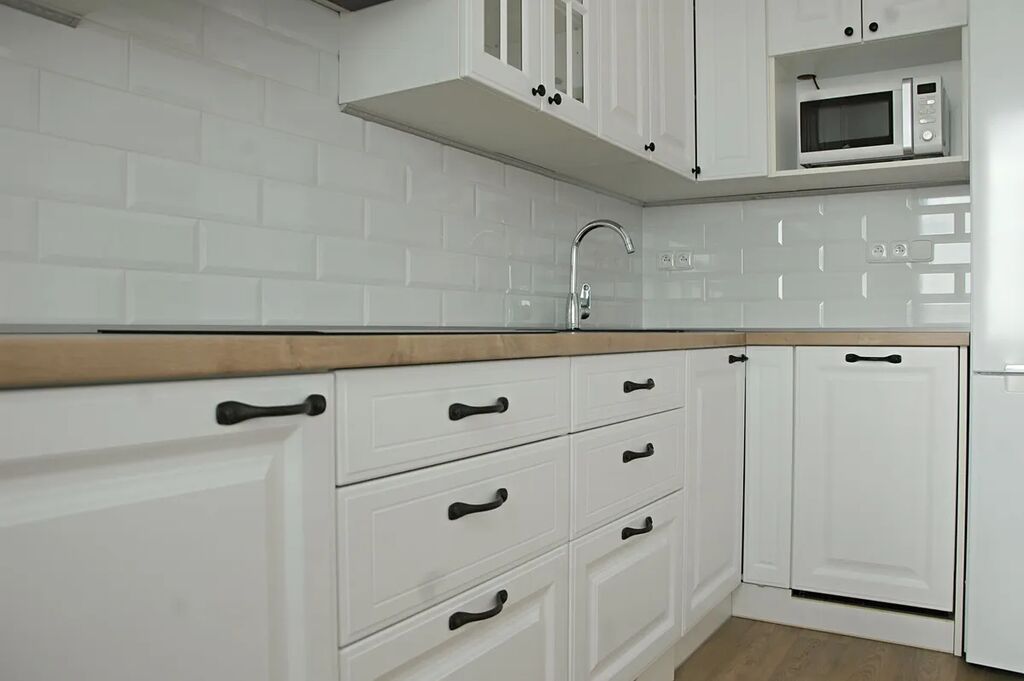 moderní kuchyně s jídelním koutem a plně vybavenou kuchyňskou linkou (indukční varná