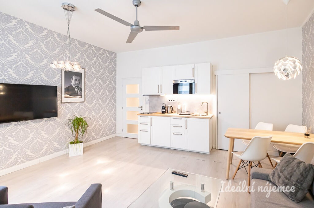 K dlouhodobému podnájmu Vám nabízíme kompletně zařízený byt o dispozici 2+kk. Byt se nachází ve 3. patře udržovaného cihlového domu s výtahem, nedaleko Václavského náměstí.