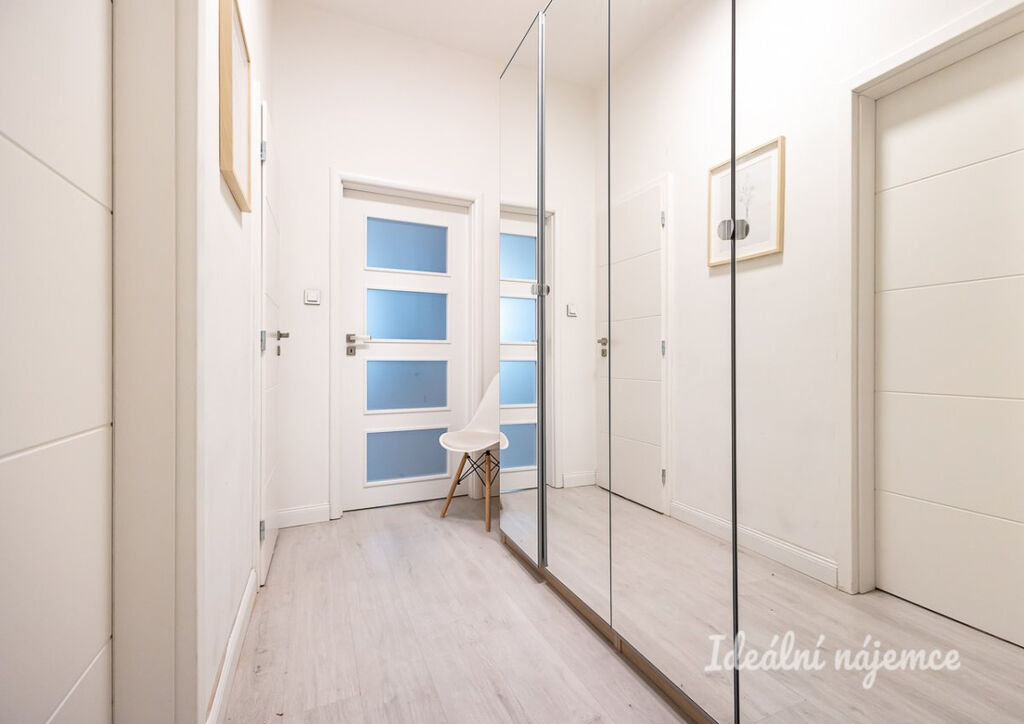 Byt se skládá z centrální chodby zařízené velkou vestavnou skříní.