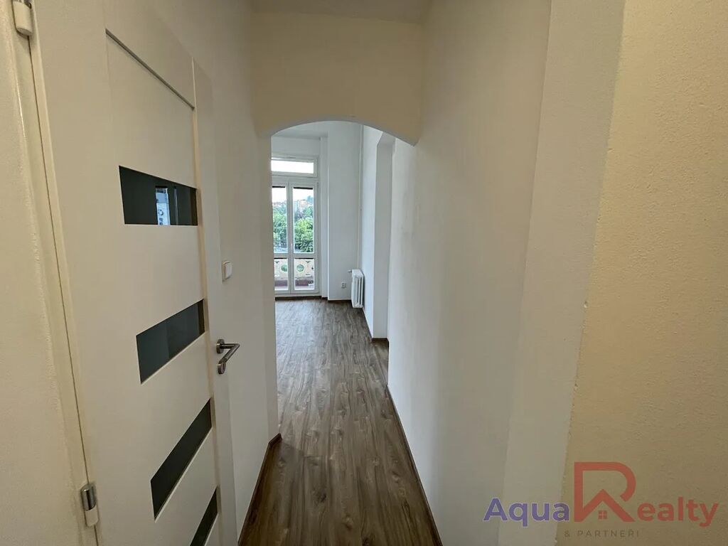 V předsíni je nová vestavěná skříň s regály a po levé straně se nachází nově vybavená koupelna s toaletou, vanou, umyvadlem, žebříkovým topením, dvěma skříňkami a automatickou pračkou. Kuchyň je vybavena novou kuchyňskou linkou včetně vestavěných spotřebičů (plynový sporák, elektrická trouba, digestoř, lednice), odkládacím prostorem a vstupem na balkon (4,4 m2) s orientací na jihovýchod. Z kuchyně se dostaneme do obývacího pokoje/ložnice s připojením STA, internetu a dvojím vstupem na druhý balkon (3,7 m2) s orientací na jihozápad.