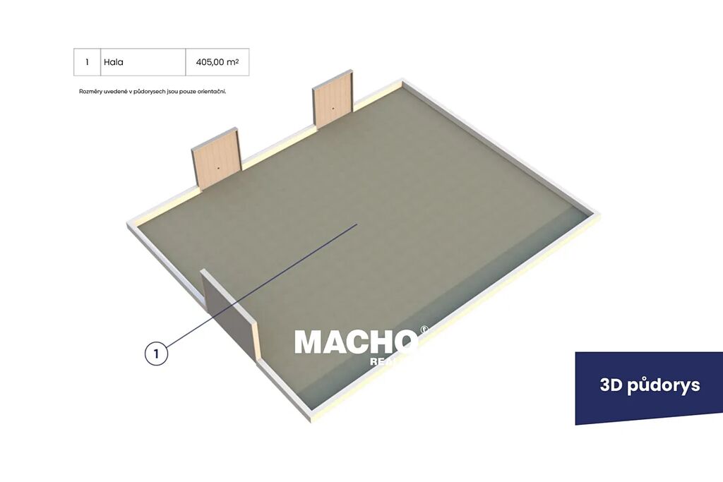 Hala má rozměry cca 22,5 × 18 m a výšku 5 metrů. Díky svým parametrům je ideální pro autoservis, pneuservis, lehkou výrobu nebo skladování.