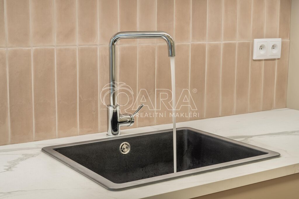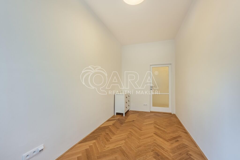 Interiér prošel kompletní renovací – majitel si dal záležet na detailech. Na podlahách jsou krásné parkety, nová kuchyňská linka nabízí plno úložného prostoru, koupelna s vanou je designově sladěná a WC je oddělené. Obě ložnice jsou orientované do vnitrobloku (jedna má balkon, druhá velkou vestavěnou skříň), obývací pokoj je směrem do ulice.
