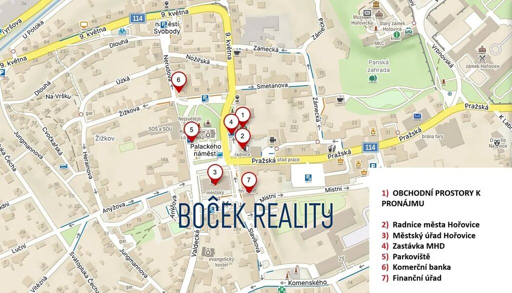 V zastoupení majitele Vám nabízíme k pronájmu atraktivní obchodní prostory s užitnou plochou 161 m² na adrese Palackého náměstí 254/3 v Hořovicích. Tyto prostory umístěné v přízemí historické budovy, situované na centrálním náměstí města jsou částečně zařízené a nabízí skvělou příležitost pro podnikání. Tyto prostory je možné upravit dle potřeb zájemce na náklady majitele. Díky své poloze a vysoké frekvenci potencionálních klientů je toto místo ideální pro obchodní aktivity. Objekt je dobře dostupný veřejnou dopravou (zastávka MHD před domem) i automobilem s možností parkování na přilehlých městských parkovištích. Neváhejte a nenechte si uniknout tuto jedinečnou a exkluzivní příležitost pro Vaše podnikání. Pro více informací, případně pro domluvení prohlídky nás neváhejte kontaktovat.
