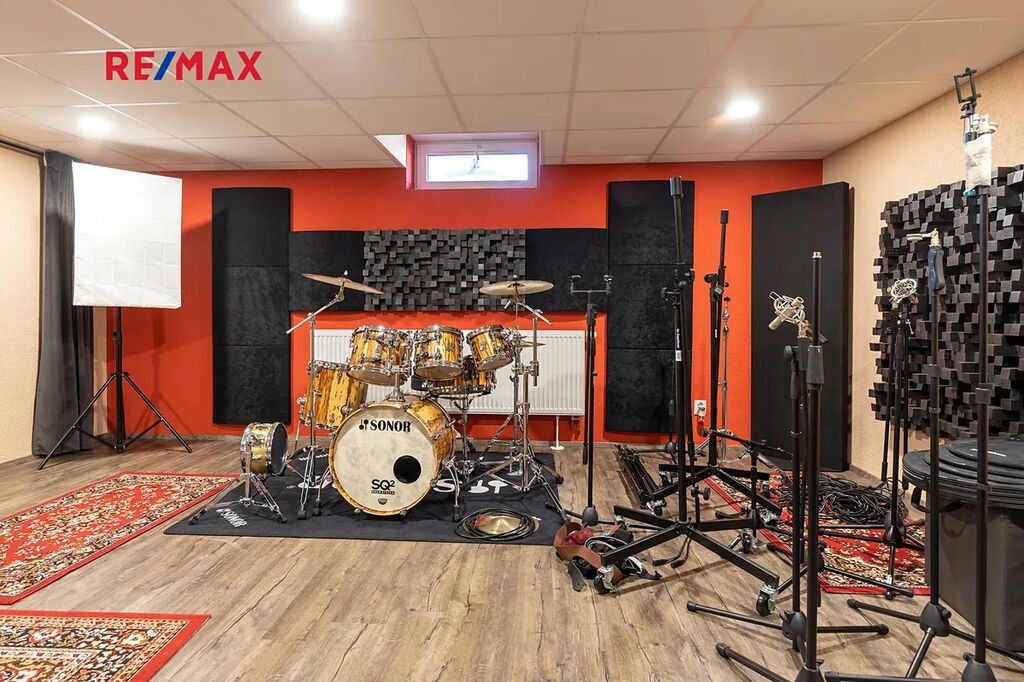 Suterén domu: Nahrávací studio (cca 39m²), obývací prostor (cca 42m²), prádelna (cca 26m²), toaleta (cca 3,5m²), chodba (cca 12m²), kotelna (cca 36m²). Suterén domu disponuje samostatným vstupem.