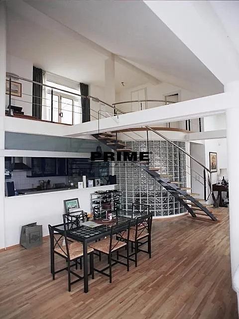 Unikátní, zařízený, 4 ložnicový, mezonetový byt se 3 koupelnami k pronájmu, 5+kk, 250m2, s terasou, zimní zahradou a garáží, situovaný v 6. a 7. patře kompletně zrekonstruovaného domu s výtahem. Budova se nachází v rezidenční lokalitě na Novém Městě, u parčíku, nábřeží Vltavy, v blízkosti zastávky tramvaje a stanice metra Karlovo náměstí (Palackého náměstí exit), blízko obchodů, kaváren a restaurací, 3 zastávky tramvají do centra, 2 zastávky tramvají k obchodnímu centru Nový Smíchov s Tesco supermarketem a multiplex kinem a 5 minut jízdy autem k Francouzské škole. Byt má výhled na řeku Vltavu, Petřín a Pražský hrad.