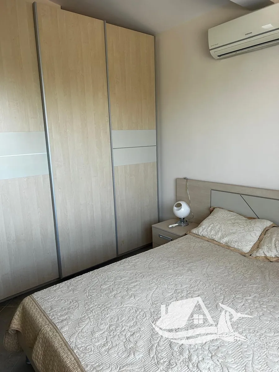 Byt je kompletně vybaven nábytkem na míru a kvalitními spotřebiči. Podlahy jsou pokryty laminátem, stěny laděny do jemných tónů, koupelny obloženy španělskými obklady – každý detail byl promyšlen pro maximální pohodlí.