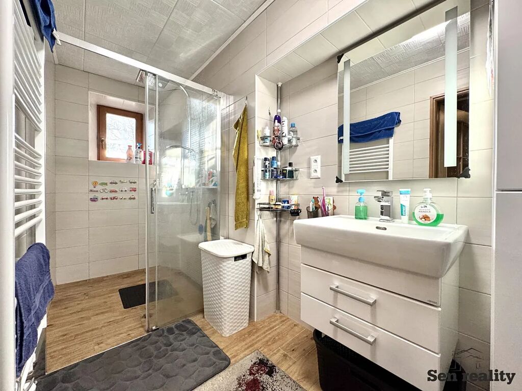 Přízemí domu prošlo kompletní rekonstrukcí - energeticky úsporné tepelné čerpadlo s nízkými provozními náklady, nové rozvody elektřiny a vody, volně stojící kamna.