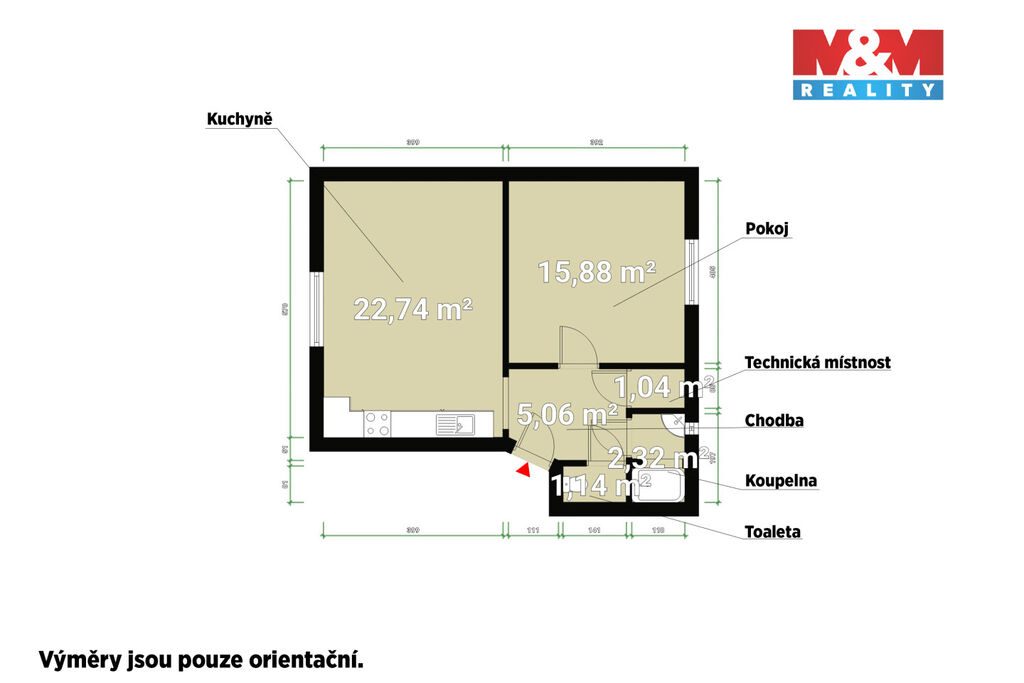 Dispozice bytu zahrnuje prostorný obývací pokoj s moderním kuchyňským koutem, ložnici a elegantní koupelnu. Vytápění zajišťuje elektrický kotel, ohřev vody bojlerem. Byt je připraven k okamžitému nastěhování bez nutnosti dalších investic.