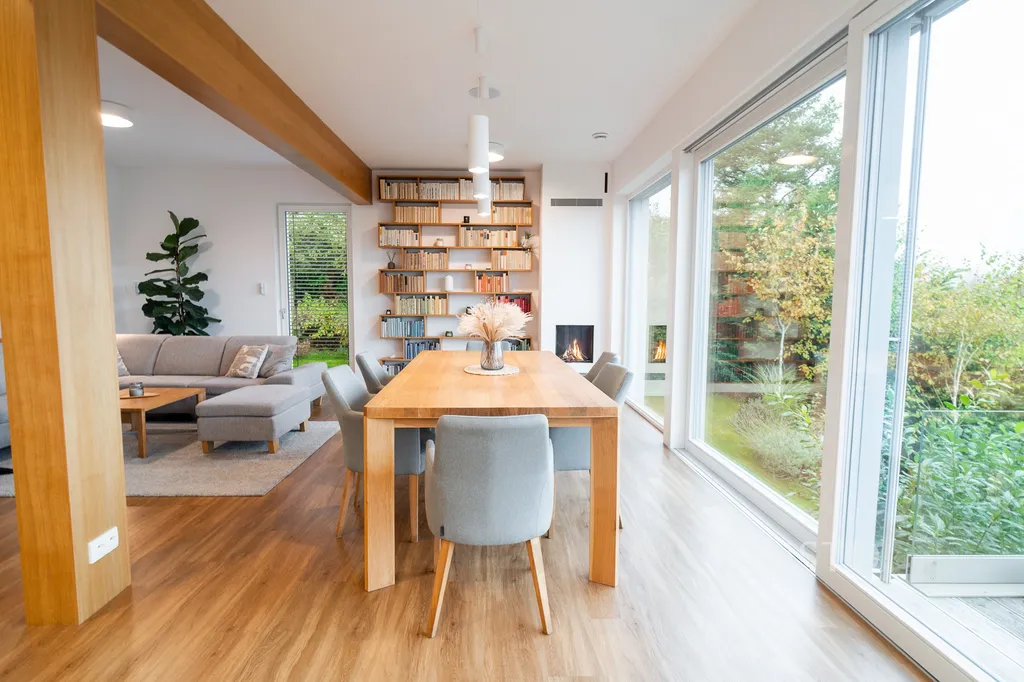 - dřevěná okna s bezpečnostním sklem Connex (nerozbitná) a posuvným HS portálem se vstupem na terasu
