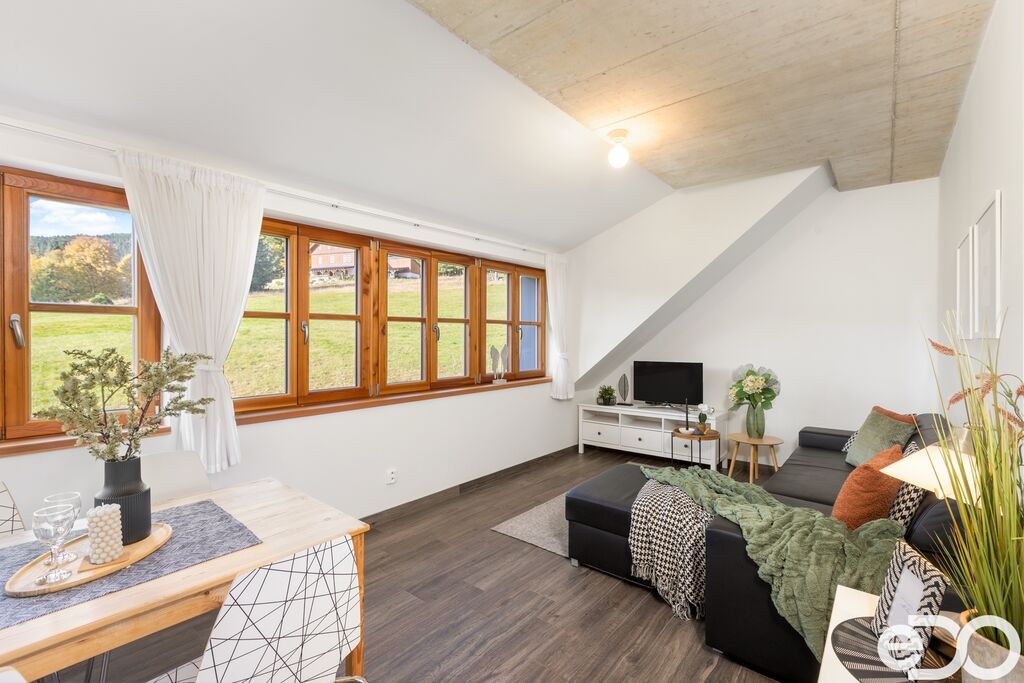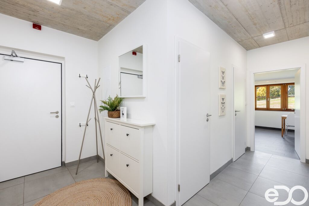 V jejím prvním patře se nachází apartmán o velikosti 65 m², dispozičně řešený jako 3+kk. Interiér spojuje moderní komfort s horskou atmosférou – výhled do krajiny. Součástí je také garážové stání a sklep, které zajišťují pohodlí i pro delší pobyty.