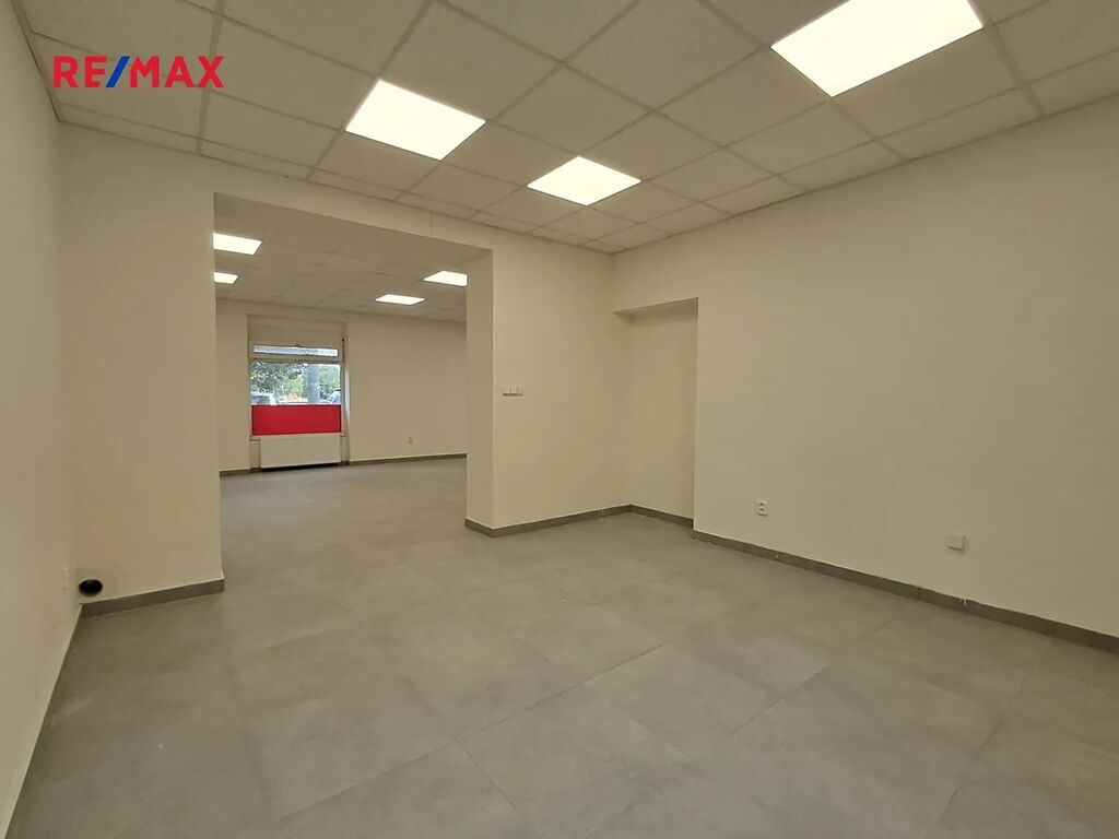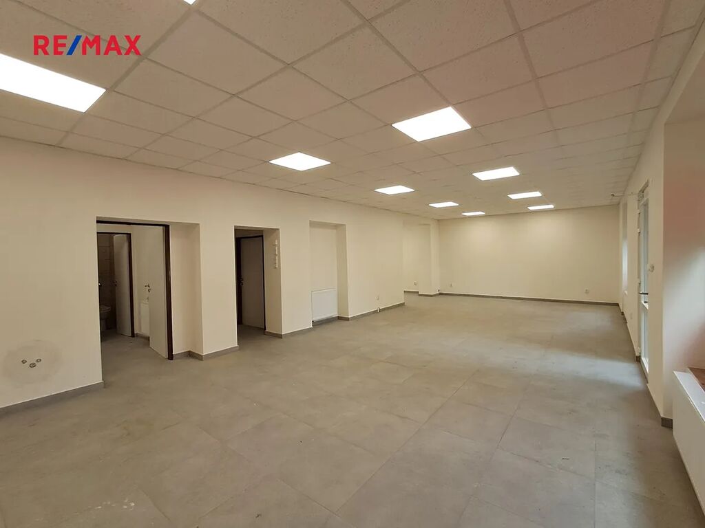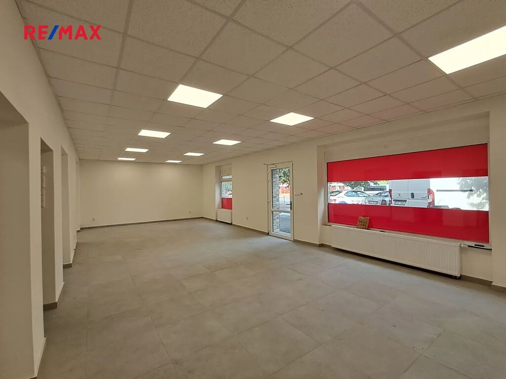 Obchodní prostory se sociálním zázemím se nachází v 1.NP domu s plochou cca 90 m² (70m² prodejní plocha, 20m² sociální zázemí).