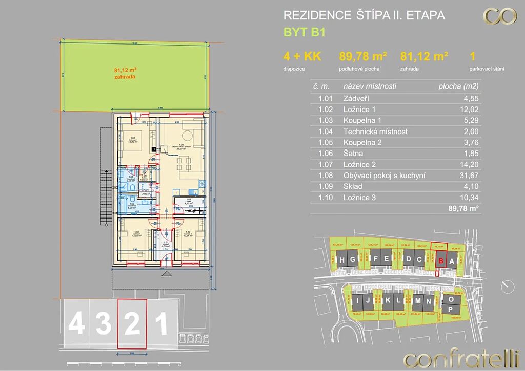 Moderní byt 4+kk se zahrádkou ve Zlíně – Štípě označený jako B1