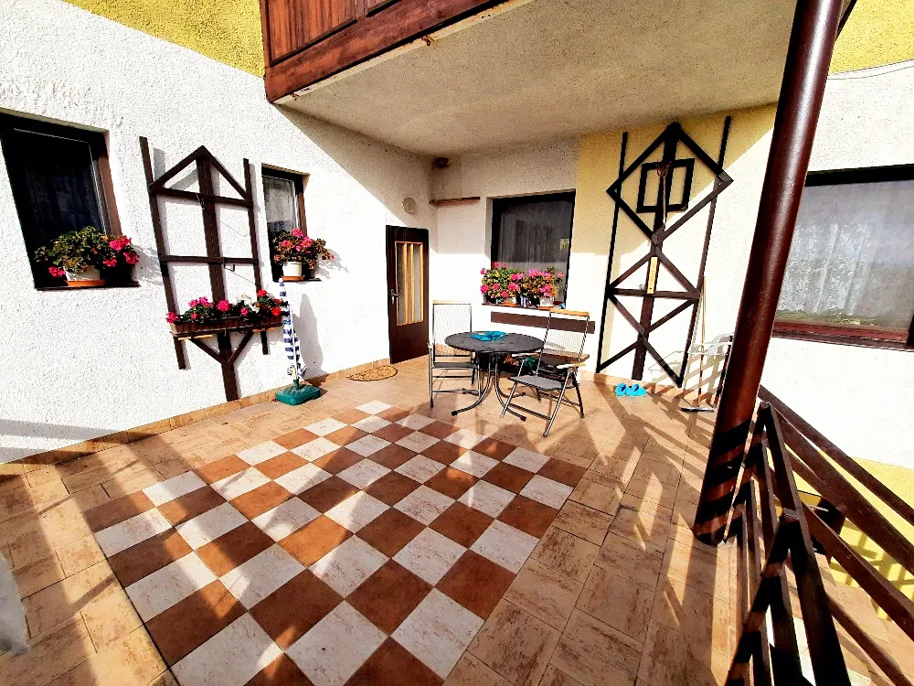 Patro: chodba, 3 pokoje, obývací pokoj, koupelna, WC, technická místnost, zasklená veranda