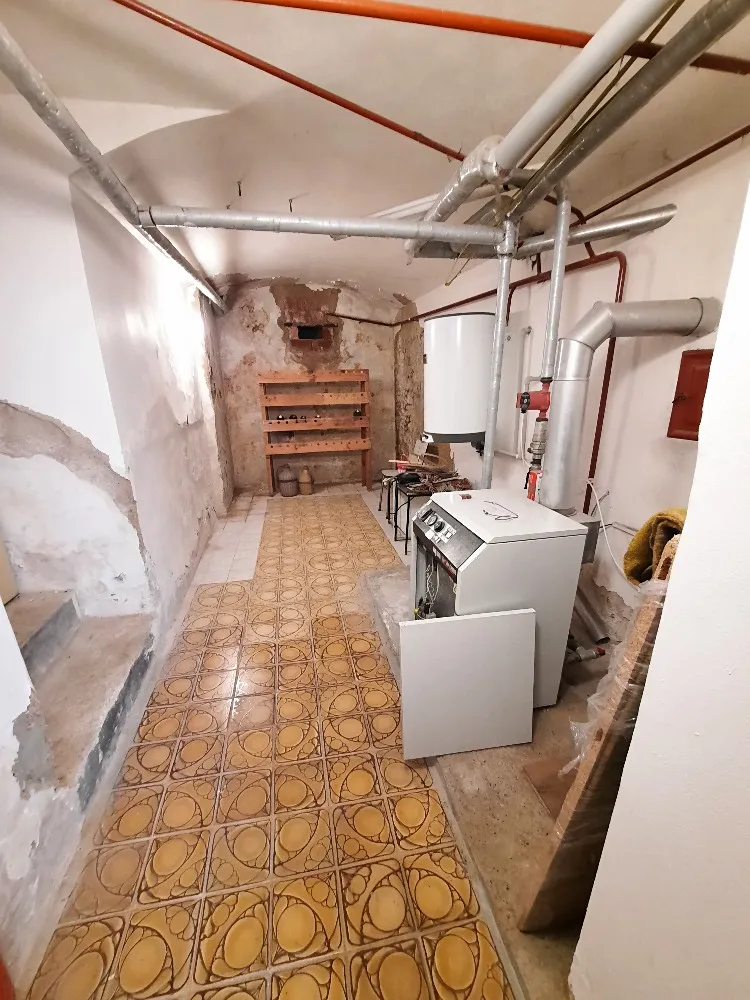 Dům je kompletně podsklepený, kde je technická místnost s plynovým kotlem, bojlerem, dále sklepy na brambory a zeleninu a chlapský koutek. Dům je napojen na vodovodní řád, elektrika je zde 240 i 380 V, kanalizace, topení je zajištěno plynovým kotlem s radiátory + krbová kamna.