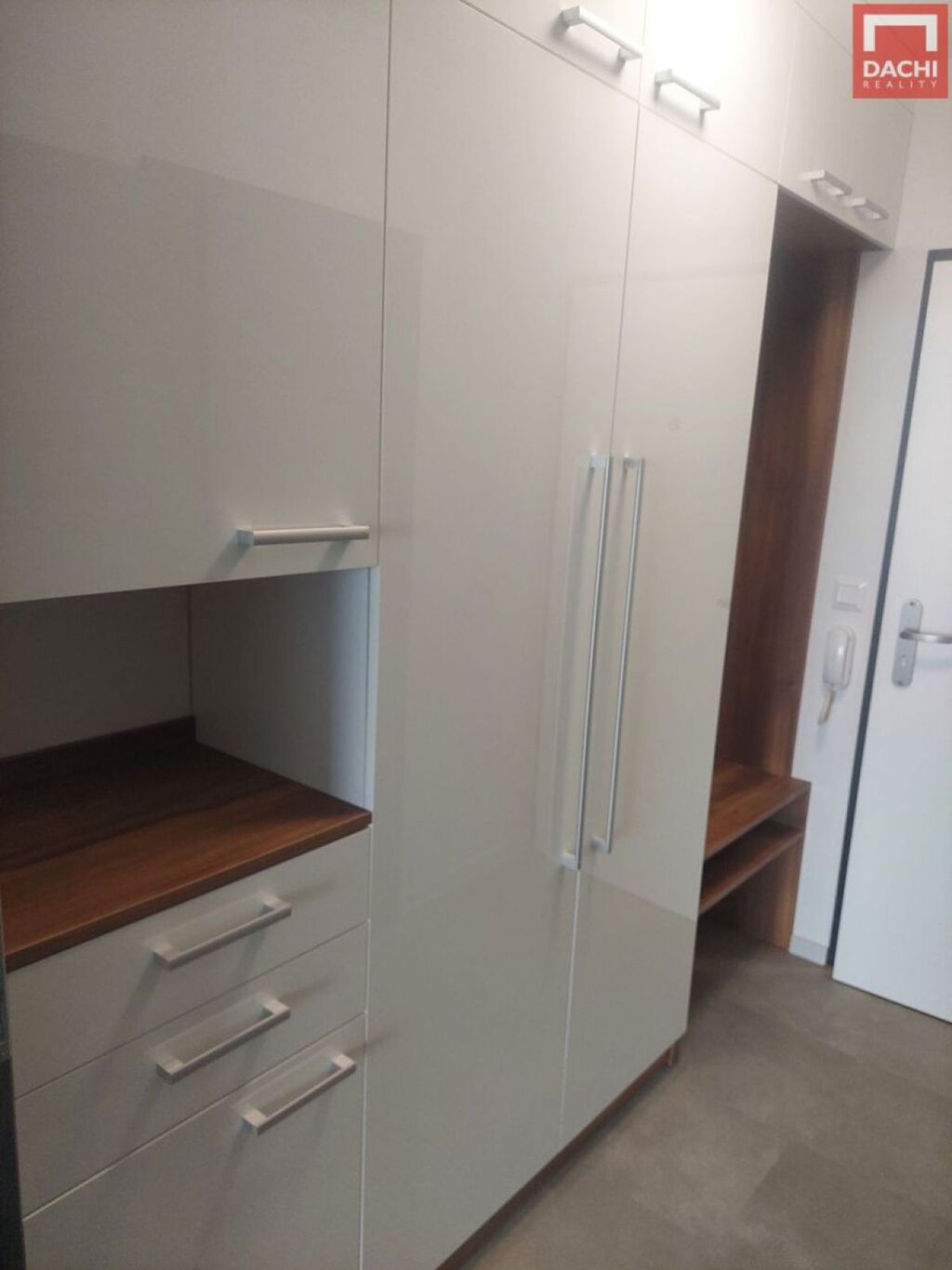 Byt je vybaven moderní kuchyní, jídelním barem a dvěma židlemi. V předsíni je k dispozici praktická vestavěná skříň, která poskytuje dostatek úložného prostoru. Celý byt je velmi světlý, vzdušný a nabízí příjemnou moderní atmosfér. Koupelna se sprch,, koutem, umyvadlem, WC - geberit a prostorem pro umístění pračky a popř. i sušičky prádla.