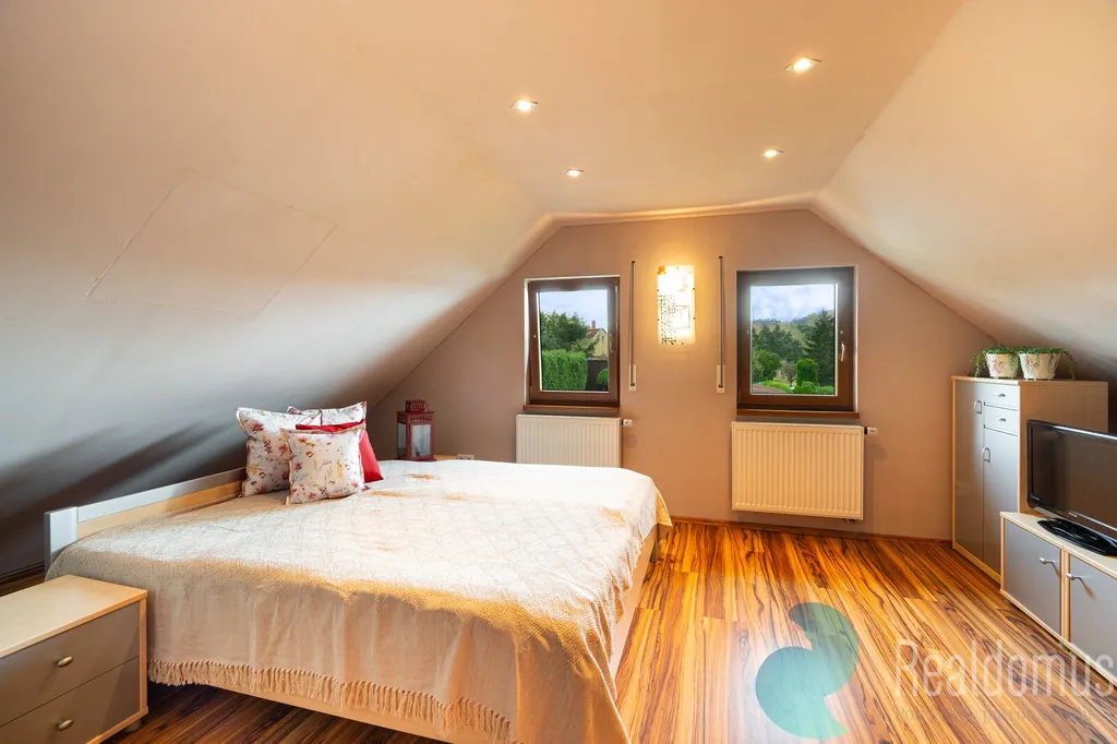 Dům je v současné chvíli rozdělen na 2 bytové jednotky. Hlavní bytová jednotka 3kk s velkorysou užitnou plochou 159 m2 se skládá z nádherné prosvětlené hlavní místnosti s kuchyňským koutem o rozloze 56 m2, dvou velkých ložnic (31 m2 a 27 m2), dvou koupelen (7 m2 a 6 m2) a technické místnosti. Druhá bytová jednotka 1kk má obytnou místnost s kuchyňským koutem (31 m2) a koupelnu 6 m2. Oba byty mají společnou chodbu a mohou být součástí jedné bytové jednotky, kdy jedna z ložnic bude mít vlastní koupenu s toaletou. Velký potenciál má toto dělení pro soužití více generací, či odrostlejší děti, které mohou mít v domě své samostatné zázemí.