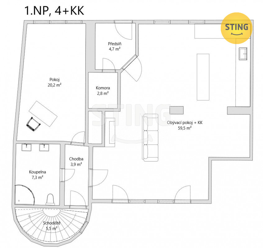 4 pokoje + pracovna