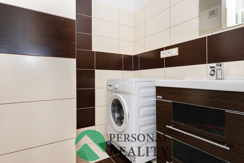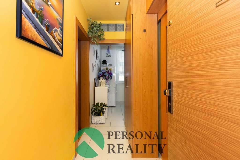 Byt je dispozičně velmi prakticky řešen – z předsíně je vstup do kuchyně, obývacího pokoje, WC a koupelny. Kuchyně je vybavena kuchyňskou linkou na míru včetně spotřebičů (trouba, varná deska, myčka, digestoř, lednice), a následně vstup do ložnice.