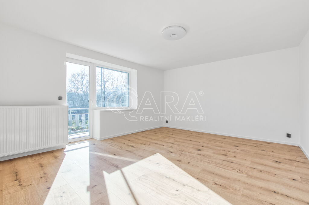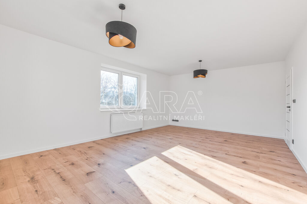Jednotka 3+1 o podlahové ploše 115 m² zabírá celé horní patro domu, který prošel v roce 2024 kompletní rekonstrukcí. V bytě se nachází tři prostorné a světlé pokoje, kuchyně připravená k dokončení, koupelna s vanou a toaletou a dva balkony s krásnými výhledy. Jeden orientovaný na východ, druhý na jih. Každý pokoj nabízí dostatek prostoru pro ložnice, dětské pokoje nebo klidné pracovny. Celý interiér má nové sádrové omítky, vinylové podlahy v dekoru dřeva a keramickou dlažbu v koupelně. Všechna okna jsou plastová s trojskly.