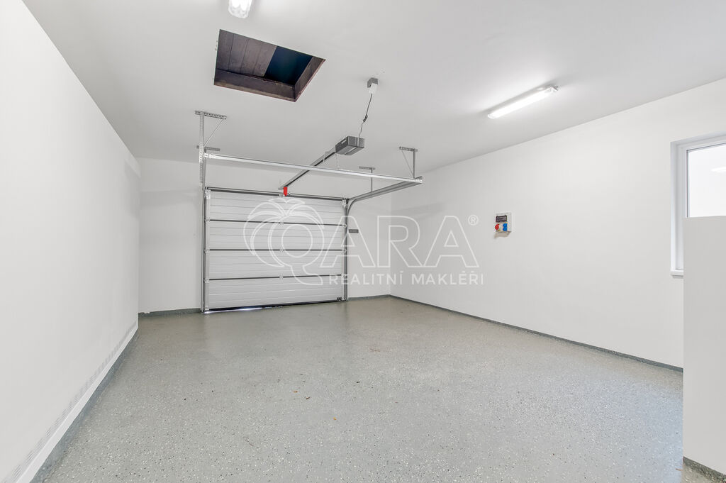 K bytu náleží samostatná garáž o velikosti 30 m², dílna o ploše 9 m²,krytá terasa o velikosti 21 m² v přízemí a také prostorná půda, jako úložný prostor. Parkování je zajištěno také na vlastním venkovním stání pro dvě auta na zámkové dlažbě. Součástí jednotky je rovněž soukromá oplocená zahrada o výměře přibližně 950 m² s možností dalšího využití podle vašich představ. Zahradní domek poskytuje prostor pro sezónní vybavení či nářadí.
