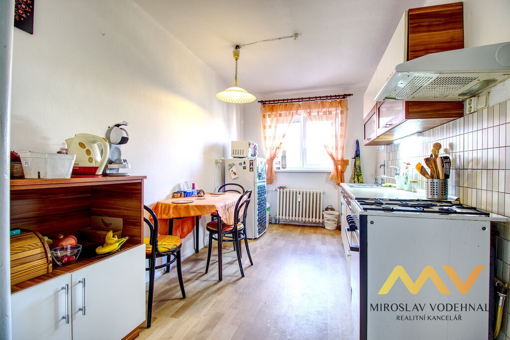 Byt je dispozičně řešen jako kuchyň se spíží, dva samostatné pokoje, koupelna s vanou, samostatné WC, předsíň a komora. Součástí vybavení je sedací souprava, jídelní stůl se židlemi, nová kuchyňská linka s plynovým sporákem, obývací stěna, manželská postel, šatní skříně, pracovní stůl, lednice, mikrovlnná trouba, pračka a televize. Sklep není k dispozici.