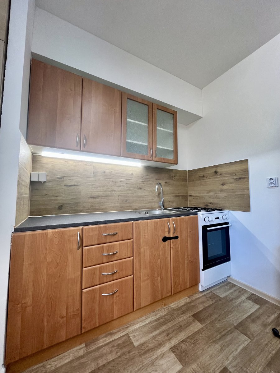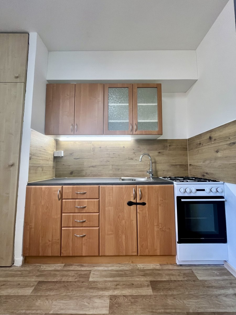 Kuchyně s elektrickou troubou, plynovým sporákem a lednicí