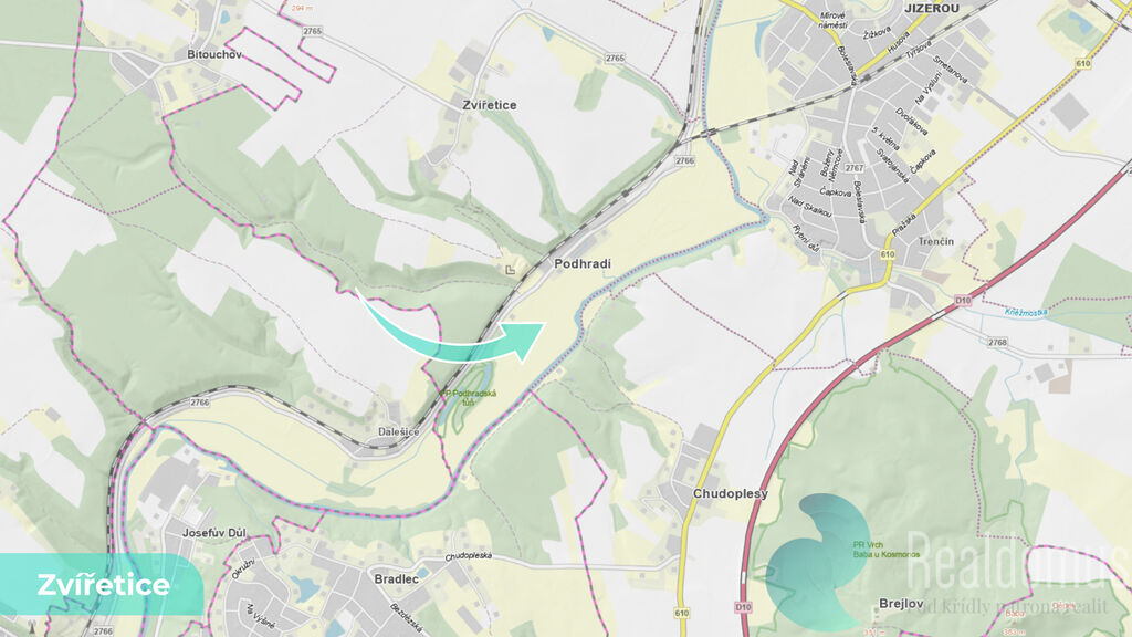 Nabízíme k prodeji spoluvlastnický podíl 3/4 na pozemku o výměře 2 544 m² v malebné lokalitě Zvířetice, mezi Bakovem nad Jizerou a Podhradím, v těsné blízkosti řeky Jizery a vyhledávané turistické oblasti se zříceninou hradu Zvířetice.